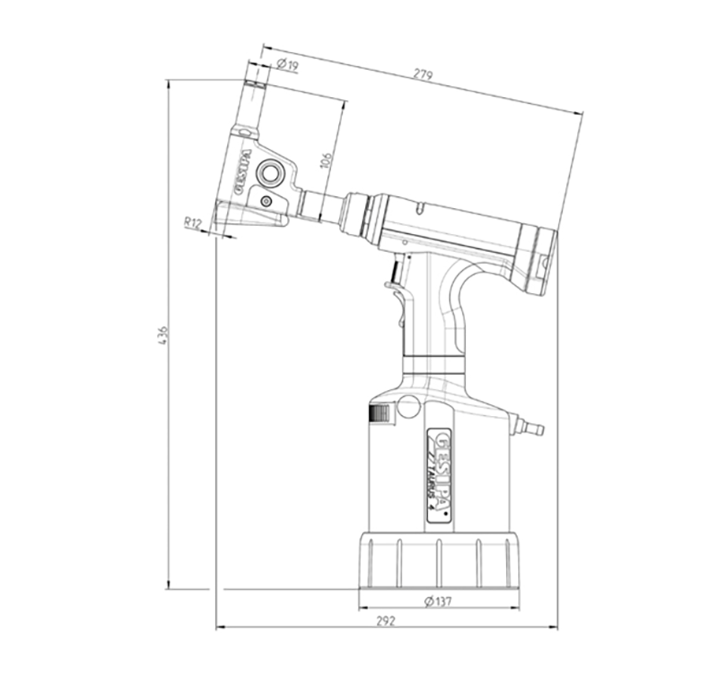 | 2,6kg | 5-7 bar | 6 mm 011/4]) | 約每個循環4.8升 | 23,000 N(6 bar時) | 19mm |